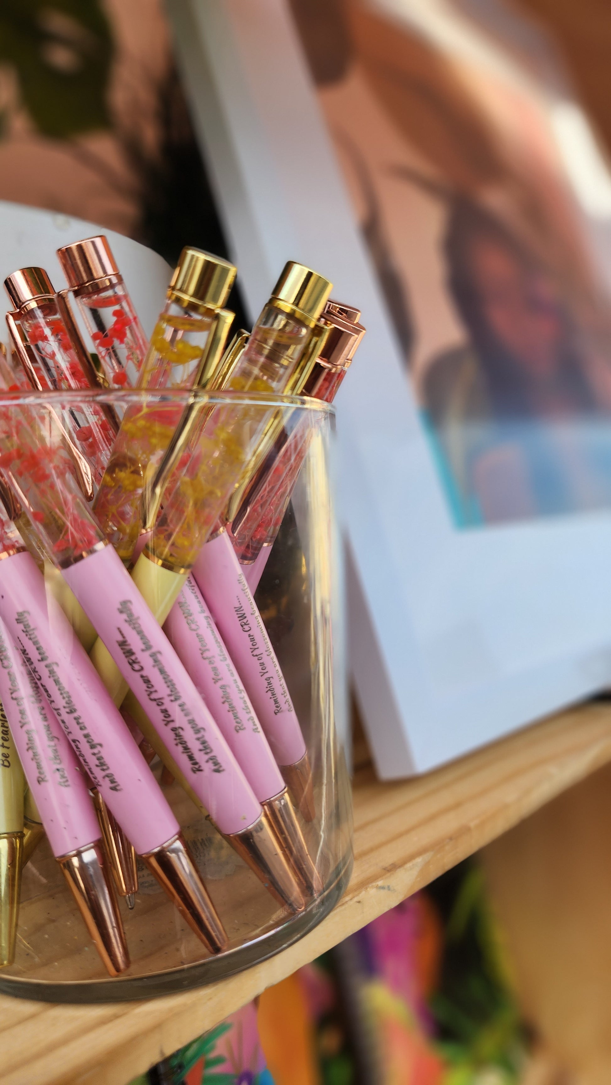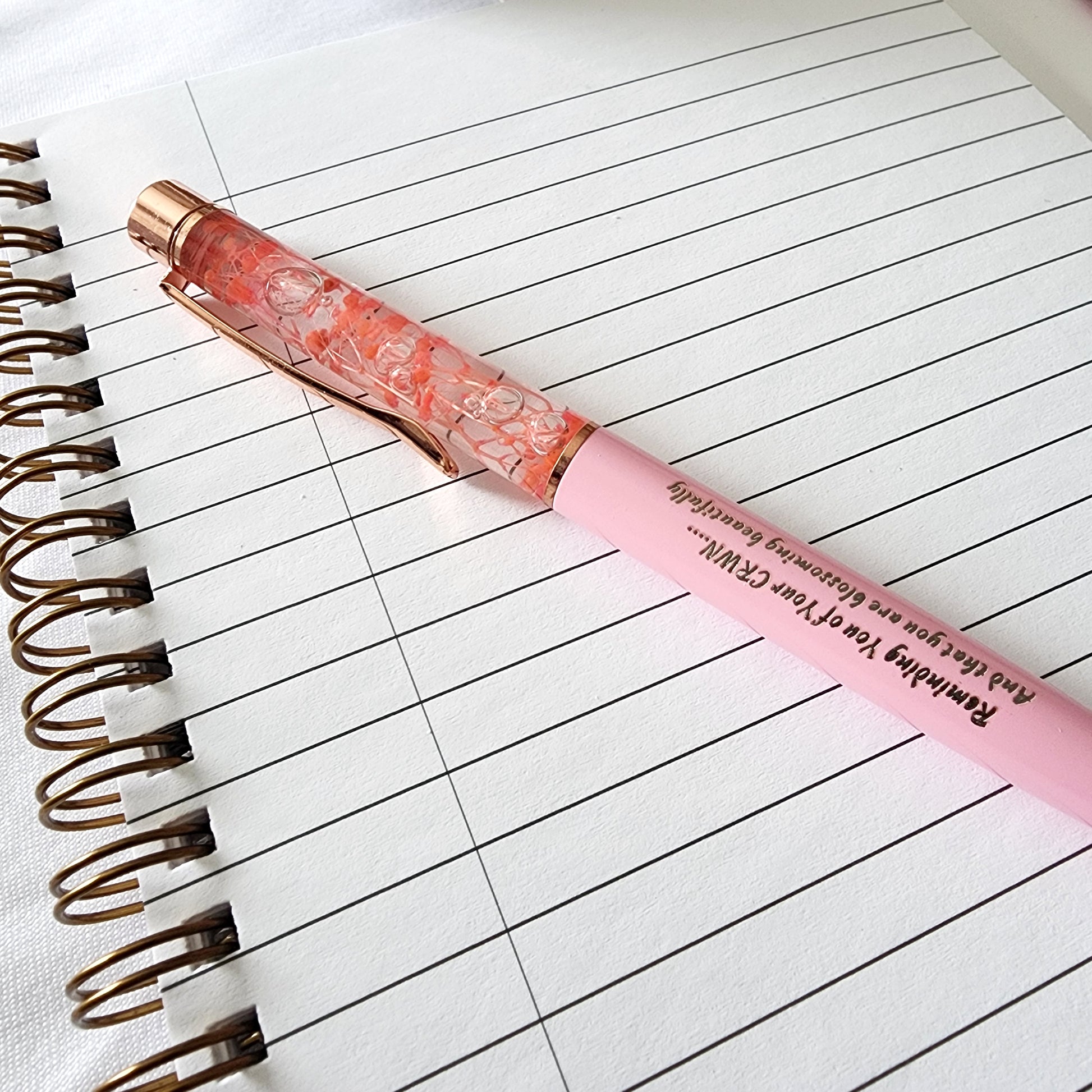 Pink Ink Pen with the message "Reminding you of your CRWN and that you are blossoming beautifully".