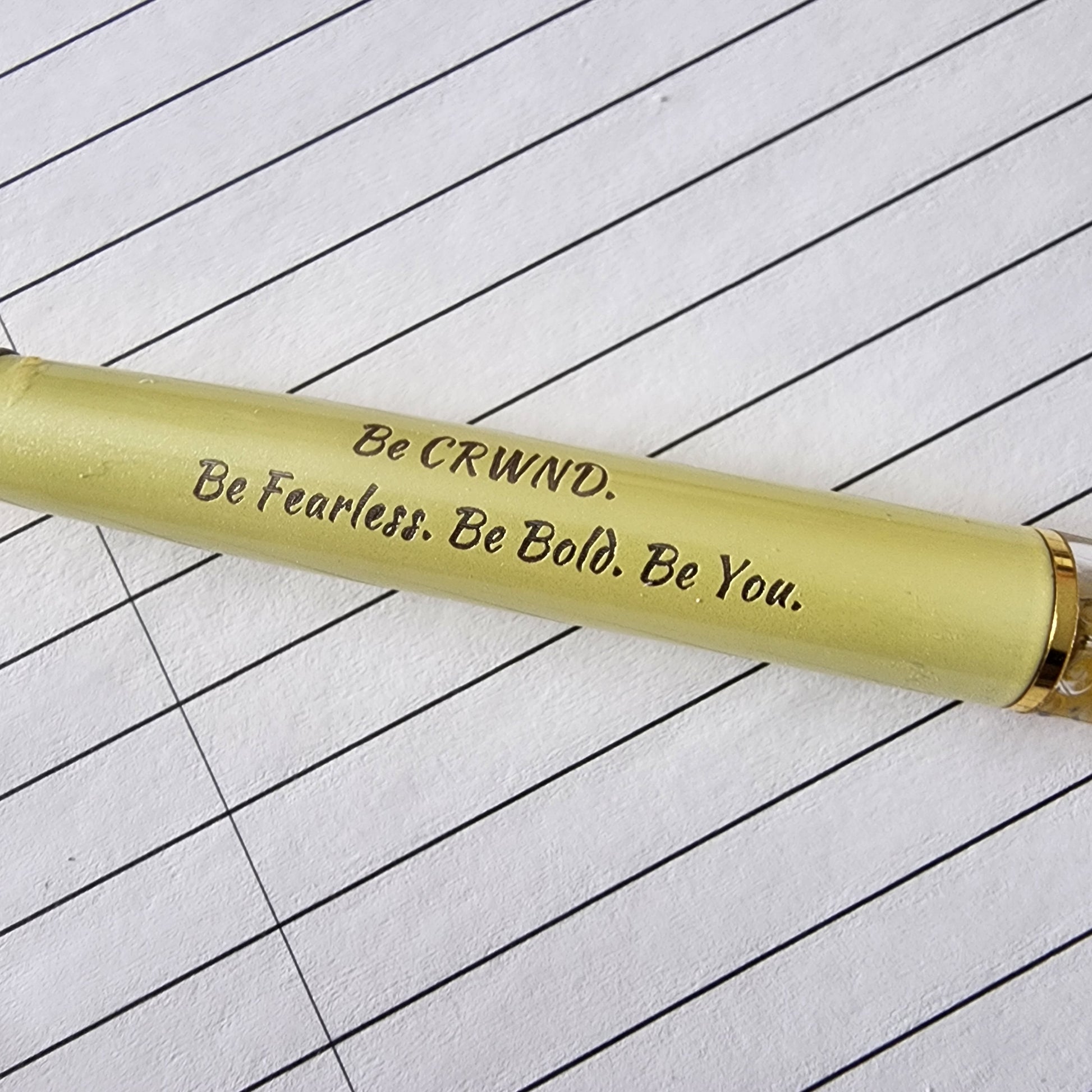 Yellow Ink Pen with the message "Be CRWND. Be Fearless. Be Bold. Be You".